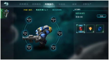 玩家可在兵种宝石界面查看拥有的宝石,不同的宝石会有不同的属性加成效果,可通过消耗钻石进行宝石征收随机获取宝石