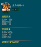 当全身装备精炼到5级后,会激活1阶精炼大师属性,获得更多的生命、攻击以及防御加成。