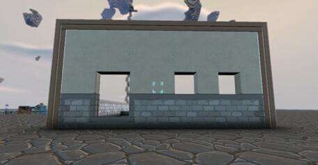 将预留出门窗位置这一侧用灰色混凝土方块拼接到高度10,并用木块做出框架。