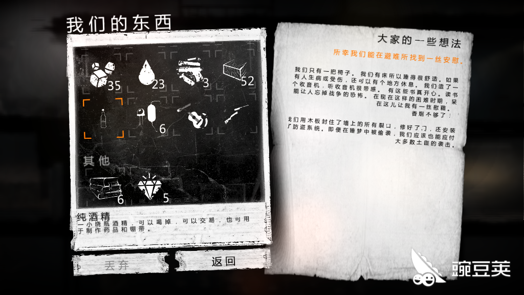 这是我的战争纯酒精怎么制作?在这是我的战争这个游戏中,纯酒精是制作绷带和药品必不可少的材料,然而在游戏中无论是绷带还是药品,其交易的价值可以说是最高的,尤其是在车库地图开放之后。
