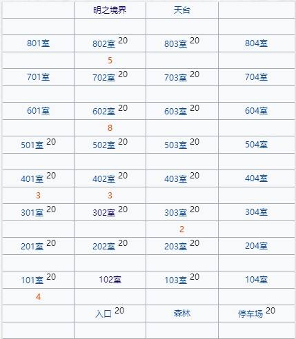 其中数量最多的为602室,有8只,这个房间是首先要去刷的,刷完之后就能去其他房间找了。