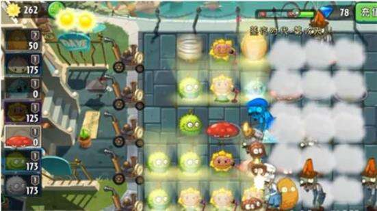 歌手向日葵、平顶菇、板栗小队、冰冻生菜、坚果、能量花等。因为这一关还是有锅炉僵尸,所以带上了冰冻系的植物,至于平顶菇,蒸汽时代常常会用上的植物上会用到的植物,不仅能防止毒雾的扩散还能阻止僵尸从下水道爬上来。