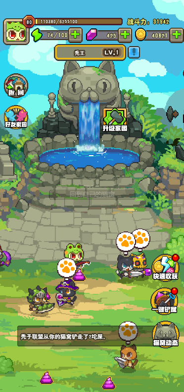 3:猫窝达到一定的条件可升级,等级提升挂机奖励更多