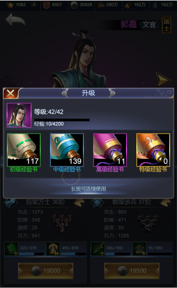 英雄需要通过经验书来提高等级,经验书的主要获得方式是“城池民心”,“沙盘演义”及“战功奖励”。