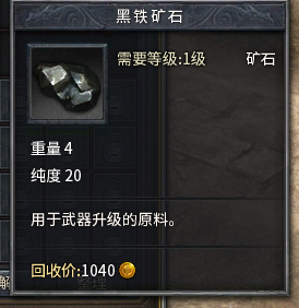 以前没经验,只要得了黑铁矿,不论纯度多少都一股脑塞给npc去炼刀。结果武器是炼成了,但耐久度却降的厉害——一把+2的偃月如果耐久跌破10还有个鸟用啊!