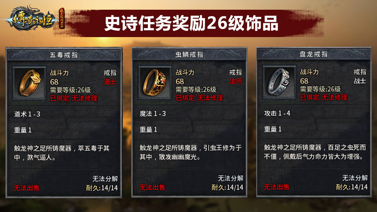 任务奖励:52300金币、181000经验、屠魔戒指/封神戒指/天道戒指