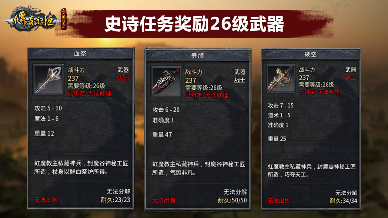 《传奇永恒》准备了经典模式与剧情模式两种游戏模式:经典模式继承传奇无任务的特色,玩家可自由选择升级方式;剧情模式则为玩家提供了实时演绎的剧情动画,引导深入了解传奇故事。此外,玩家还将接触到史诗剧情任务,今日小编就全面整理了任务奖励与完成条件与大家分享。