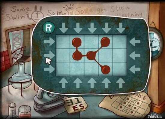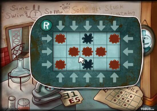 3.拿出来点击显微镜,这里又有小游戏。而游戏所最终成型的样子就是地上的那张图上的样子。需要注意的是,这里的移动只能整行整列的移动,不能单独的移动细菌。完成后得到这样的一个图案,大家要记住。