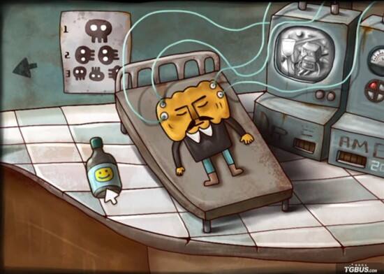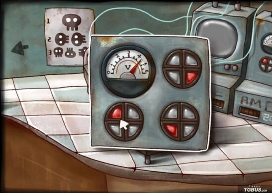 7.在门的那边,我们看到了躺着的南瓜先生。(那我们是什么)他的头上接了许多线,而右边的机器是可以调试的,不过现在不知道怎么去弄。