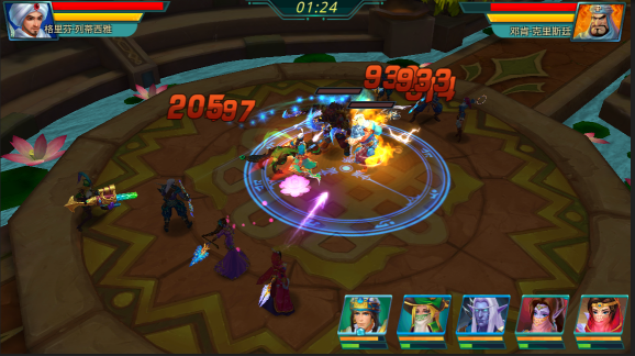 3.每个英雄拥有3个技能,其中大招技能为玩家释放,其余2个小招技能为周期自动释放。英雄的技能效果包含:恐惧、魅惑、眩晕、灼烧、牵引、冰冻、光环、击退、击倒、吸血、攻击速度改变、移动速度改变、攻击力改变等,其中只要发生导致对方位移的技能和让对方动作停止的