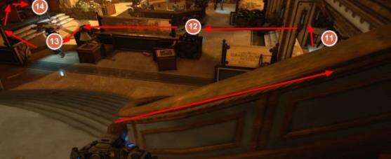 依次击杀11~14,注意就是12去杀13的时候,一定要贴着左边走,慢慢走,就不会被发现。