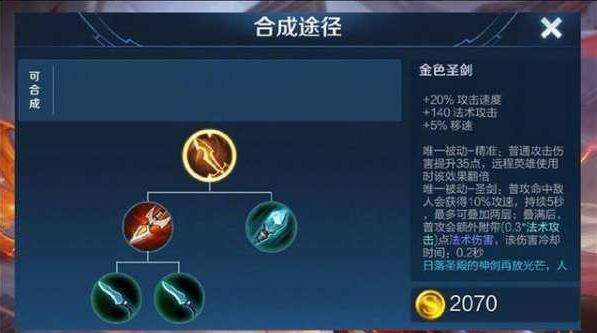 金色的剑,这件装备的明显就是远程法师的福音,其中依赖速攻属性的法师体现的尤为明显,法师也不一定靠技能吃饭。金色圣剑在手,一套平A照样带走,适用英雄,司马懿,弈星。