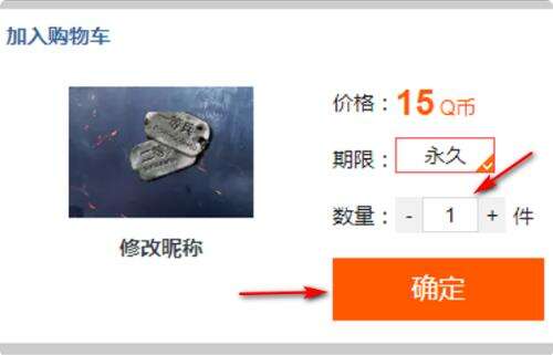 4、第四步就是点击购买修改昵称的道具,需要15QB,大约为15元RMB。