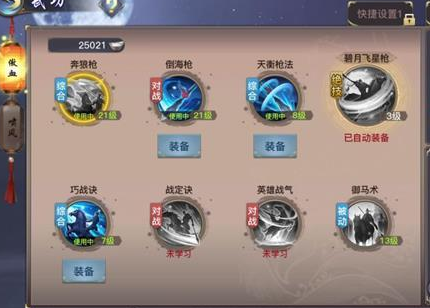 奔狼枪+倒海枪+天衡枪法+英雄战气+师门秘籍:神机要诀+绝技:碧月飞星枪