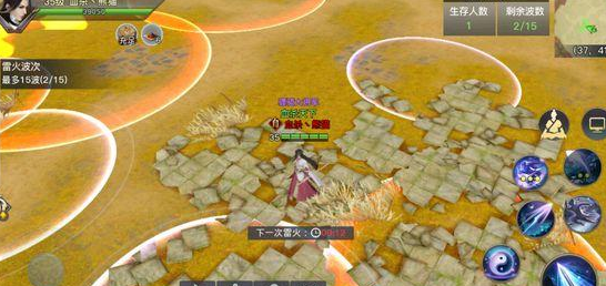 最好的策略就是先杀掉敌对玩家 最后慢慢躲,一共15波天雷荒火,越到后面越多越难的呢
