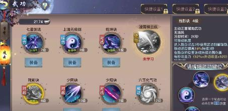 优先加满七星诀和上清无极功然后加满少阴诀,师门秘籍和绝技等级也尽可能高,中距离少阴诀破防后君子功定身然后凌霄梯云纵近身施展七星上清后闪回,残影决可用于躲避对手爆发和追击,也可在凌霄梯云纵等待间隔时用于隐身近身。