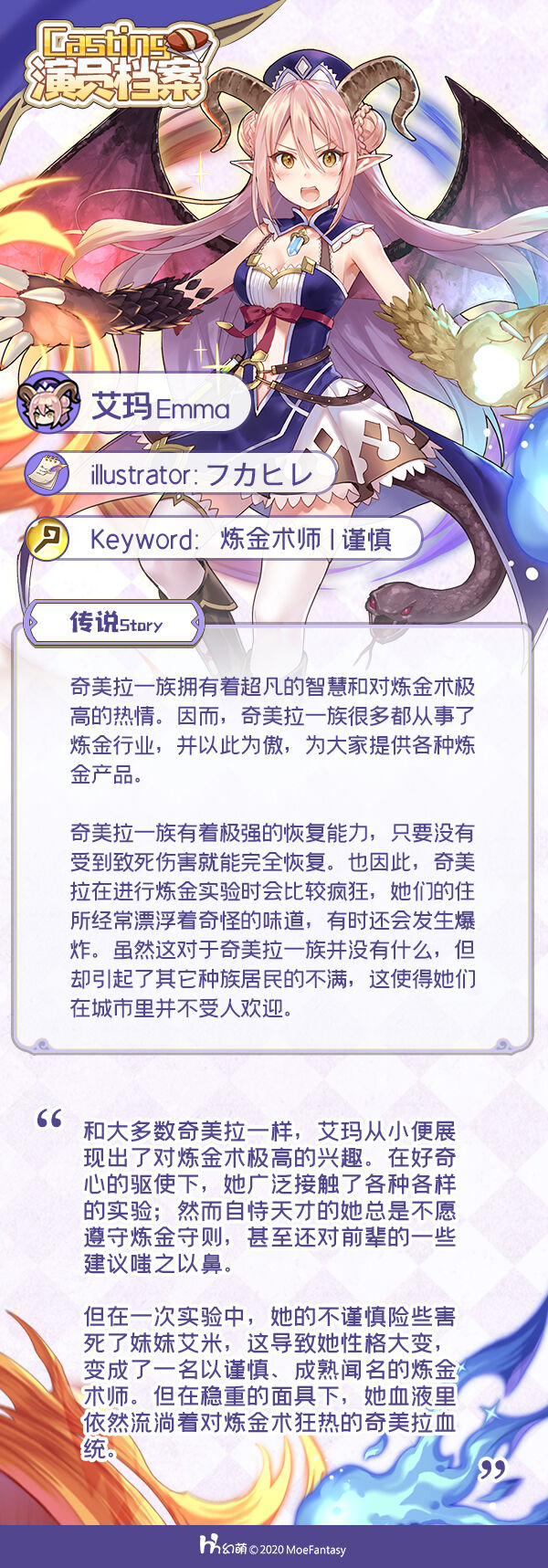 奇美拉一族的身体融合了各种元素,她们信仰物质之间变化的规律,以理性与炼金术为傲,穷尽一生探索着炼金术的奥妙。
