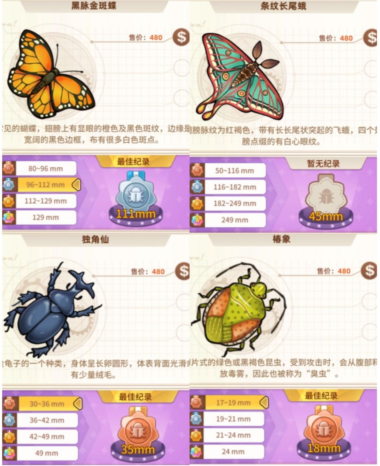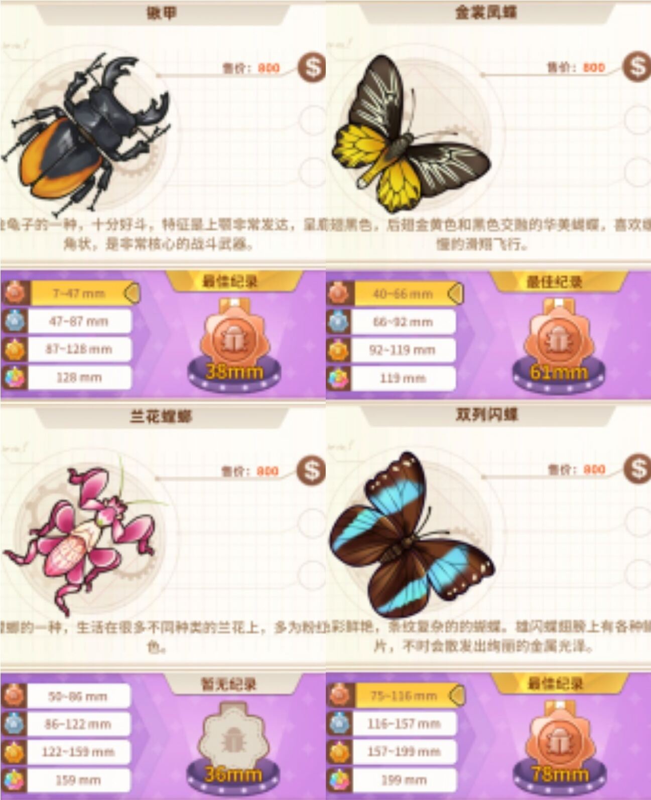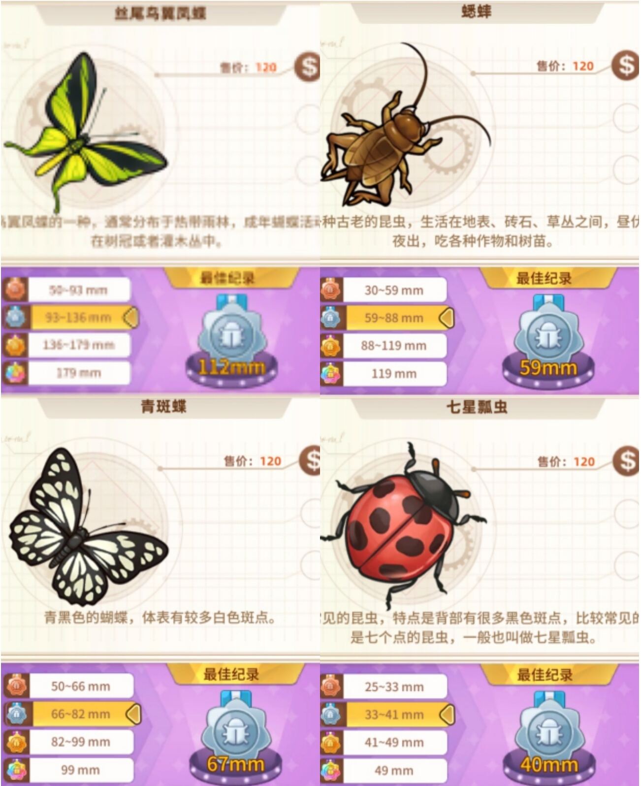 3、刷排行榜昆虫推荐排名: (根据捕捉难度,以及长度来排名) ①1星蝉