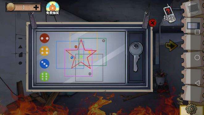 (原理 圆点被框在几个图形里)得到(钥匙)打开铁门上4楼 解开电风扇上的谜题7