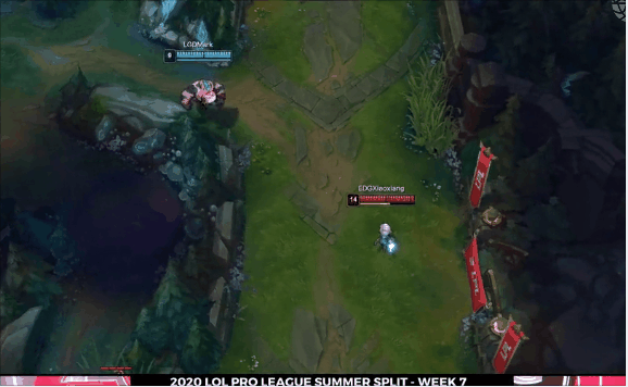注意牛哥的位置,有人会说这牛玩的什么?怎么不直接走下去二连控制呢?这么打不是浪费机会?其实不然,这就是相位牛的玩法,牛头在没有大量装备加持下,坦度依旧是短板,贸然进场WQ二连直接开出R技能也有可能被击杀。这里注意牛一直关注了妖姬的位置,这时其一。第二进团时机的把控,最佳时机进团打控制远比贸然开团要强很多。