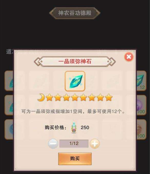当你把仙品须弥石都炼制完之后(理论上来说不氪金的话起码需要3-4年以上,虽然现在试炼玩法、神魔战场玩法等增加了不少获取石头的途径,但是石头还是优先考虑造仙衣的)就可以炼制神品须弥仙石了,不过神品须弥仙石还有另一种获取途径就是:天外天的功德殿,一颗一品须弥神石250功德。