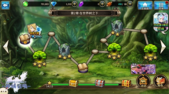 当冒险完成第一章后,就可以获得角色---女武神斯库尔德和1000宝石奖励,完成第三章更是可以让极稀有角色---女王赫尔成为你强大的助力,另外还有更多的闯关福利等你发现。