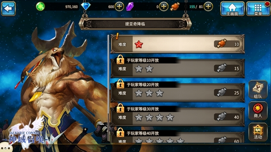 BOSS降临根据时间不同,出现的强大敌人也不同,比如幻术士提亚奇、天鲸耶梦加得、邪龙尼德霍格等等。在开启挑战时,大家可以选择自己消耗体力开启,也可以免体力加入其他玩家已经开启的队伍中,挑战的难度越高,对玩家的等级要求就越高,获胜后的奖励也越丰厚。