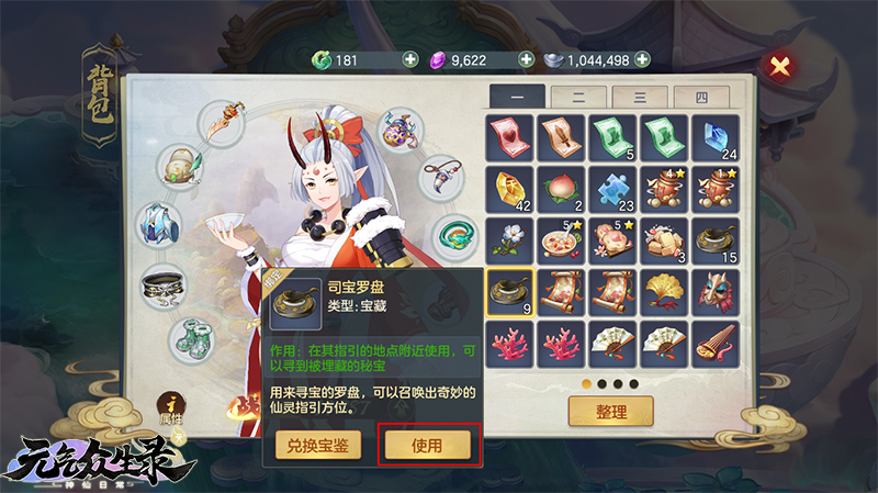 2)点击【背包-司宝罗盘】——右键使用司宝罗盘——跟随指引挖宝