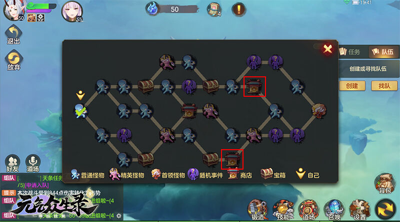 在地府试炼中,每战胜一小关卡将会获得数量不定的仙元。仙元可以在地府商店中购买你所需要的仙符,还可以帮助你恢复伤势。但是商店随机在每层大关卡三条道路的某个关卡,上仙需通过前面的关卡才能去往商店购物。选择哪条道路,是否去地府商店,买何种仙符也会成为上仙是否能够完成该关卡试炼重要因素。大家可一定要谨慎选择!
