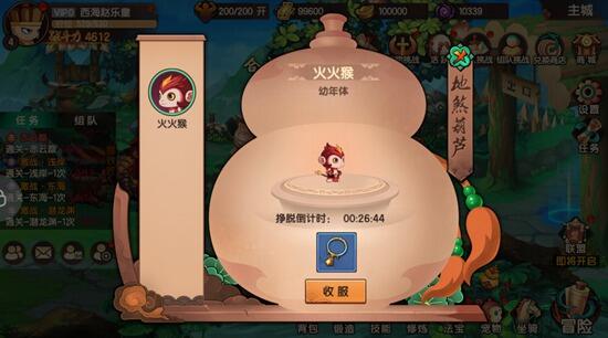 捕捉完之后还没有结束,上仙们从入口处退出副本,回到主城,还要点击屏幕右下角的这个葫芦进入驯服界面,将宠物成功驯服才算真正的捕获完成哦。