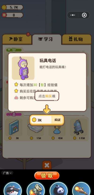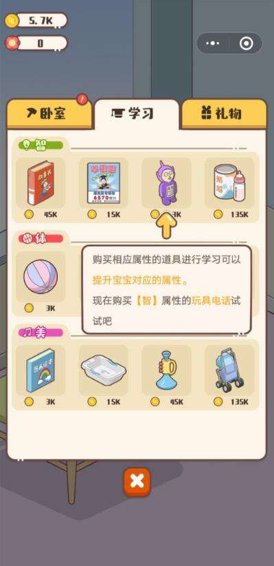 买东西需要花费金币,只要有足够钱就可以给孩子良好的教育环境和居住环境,如果现实中真的能用钱买大概会很不错。