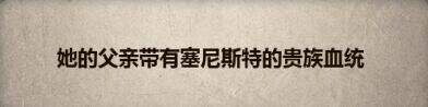 这句话表面了她的血统,塞尼斯特是国家,贵族代表了王族血统,所以他的父亲是赛宁王族,而她也继承其中一部分的赛宁王族血统。有但是并不是一定纯的,第二以前也出现过一种叫返祖的现象,就是他是这个国家的人,父亲也是,但是他完完全全的随母性血。