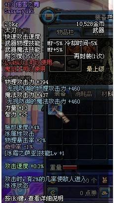 DNF中鬼剑士的武器,除了剑魂玩家的光剑的攻击速度外,最快的就数太刀了,这把刀是45级的紫色太刀,成色很漂亮,最重要的是它的附加属性了,冰属性攻击,还有几率冰冻你攻击的目标,这对于玩家来说是个很好的选择刷图来说省了很多的力气,PVP来说不经意的给对手个惊喜,很有意思的武器!