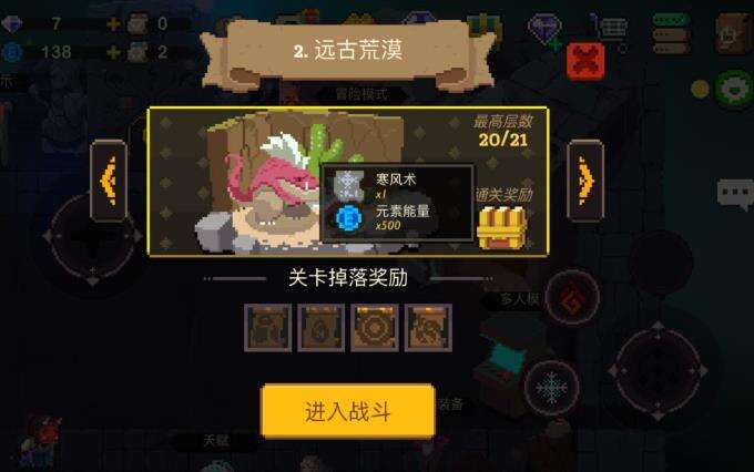 在挑战模式下1-4级的BOSS被击败后,也可以获得相应的元素能量,如上图所示。