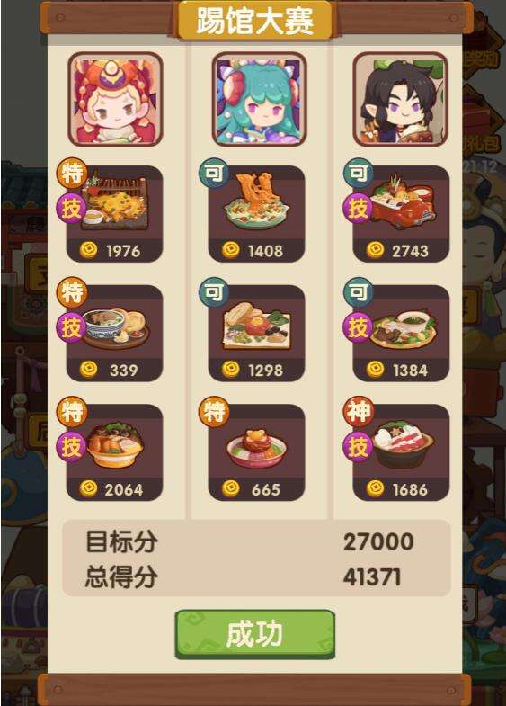 实际得分可以超过任务分数27000。大家可以在这次的限时活动中作为一个参考(那些是以前提到过的厨房用具)