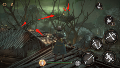 首先,从第一个祭坛开始,经过黑精商人,然后到达屋顶上的岔路口。