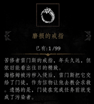 杀死变成巨蛋的蜥蜴后,拿到材料[磨损的戒指]。