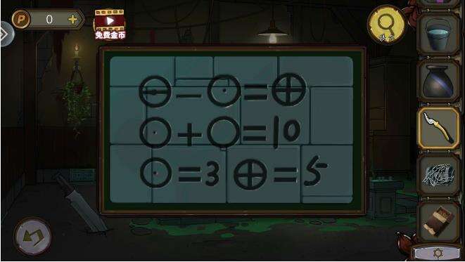 34.用螺丝刀打开厨房的桶,取出油壶。用油壶拔出地下室的刀。