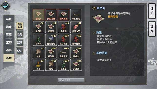 给自己补血,简单粗暴,冷却时间5个回合,但实际上它跟续命丹差不多,用处不大。