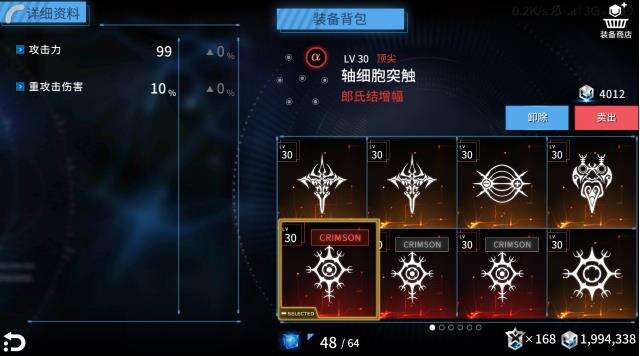 因为绯红有三个α槽,我放了三个顶尖细胞突触(郎氏结构增幅),加297攻击和30%的重击伤害。