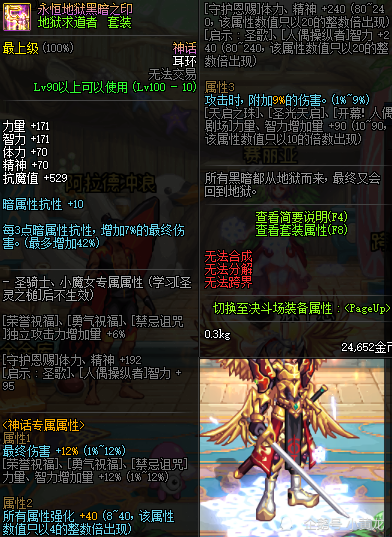 第三难出的是大幽魂之一的永恒地狱黑暗之印,我们知道DNF毕业的装备是3+3+3+2而这个就是其中一个3的单件,是《地狱求道者》的耳环