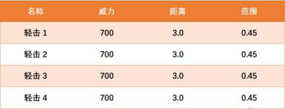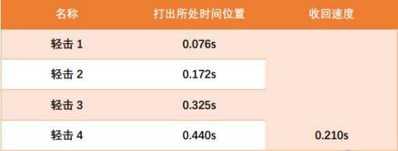 在这里大家千万要注意一点,不要被数据表面所误导,由于是四段连击,打出的速度是从开始时间(默认为0.000s)开始计算,并不是越来越慢。轻击一套总耗时0.65s,速度还是可以的,虽然范围方面不如男猎手,但是较快的速度可以弥补这一劣势。