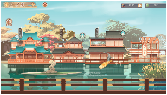 鱼干在广厦前面的池塘里。过了一会儿,一条鱼会跳出来,点一条鱼来获取小鱼干。按照功课要求的数量抓鱼干就够了,主要用于和浣花草堂及菟菟练习联诗。