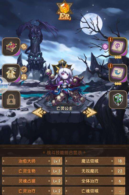 亡灵公主:辅助带治疗以及进攻士气,还有减魔抗的群体buff就行。