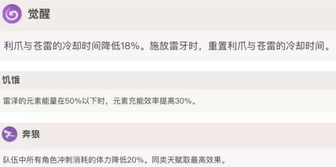 奔狼:该天赋在队伍中只会生效一个,同类中取最高值,在跑图时效果十分明显。