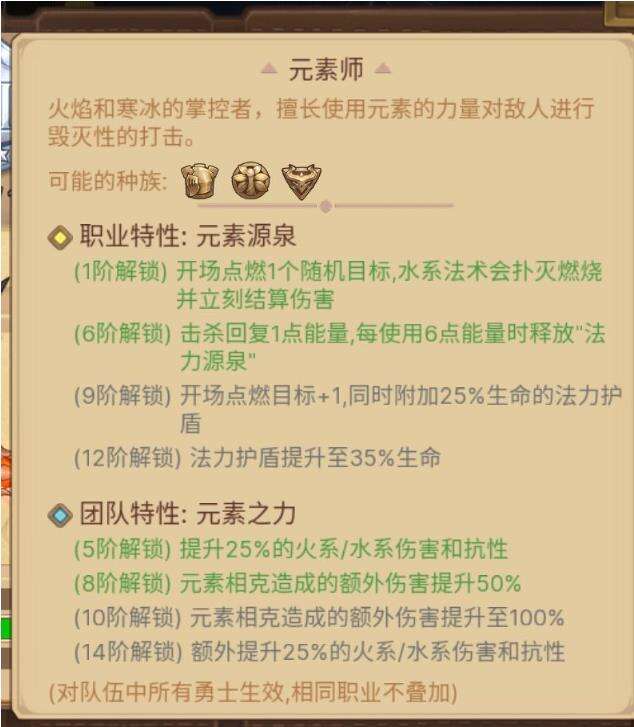推荐理由:元素师的伤害排名仅次于狂战,他的团队特点大大提升了他的输出。元素之力进一步增强了伤害,元素在一些关卡加强了伤害。火陨在进阶后获得一系列的加成之后伤害飙升。职业特点保证了他输出能力和自身保命的能力。同时,结合巫术师的团队特性,可以增强一些伤害的持续伤害能力。