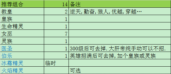 教皇的核心玩法组合推荐如下表。欧皇或肝帝的实际组合数可以高于下表,效果会更上一层楼。
