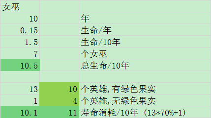 七女巫可以在寿命的动态平衡中实现轻微的盈余。计算过程如下: