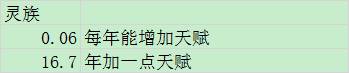 灵族平均为16.7年增加一星的天赋. (10点天赋加一星, 一个蓝色药瓶增加2点, 2年有30%概率出现1个)