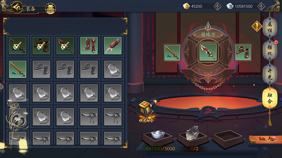 每3件同品质的装备加上银币和矿石可以合成一件更高品质的装备。